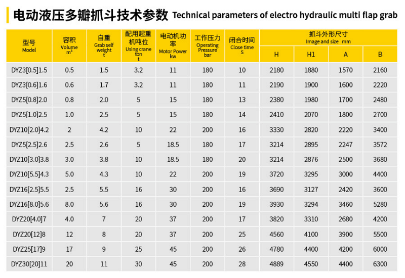 DYZ型電動(dòng)液壓多瓣抓斗與DY型電動(dòng)液壓雙瓣抓斗是我公司引進(jìn)歐美的制造技術(shù),按照歐美的系統(tǒng)技術(shù)資料,主要液壓元件裝置歐美進(jìn)口,綜合采用了先進(jìn)的電氣液壓機(jī)械技術(shù),抓取力大,自動(dòng)化程度高,是大塊礦石、生鐵塊、廢鋼、垃圾、鐵粉、秸稈、礦渣等物料的理想裝卸工具。其主要適用于鋼鐵、礦山、林場、煤礦、海港碼頭、廢鋼收購、垃圾處理、生物發(fā)電等行業(yè)。