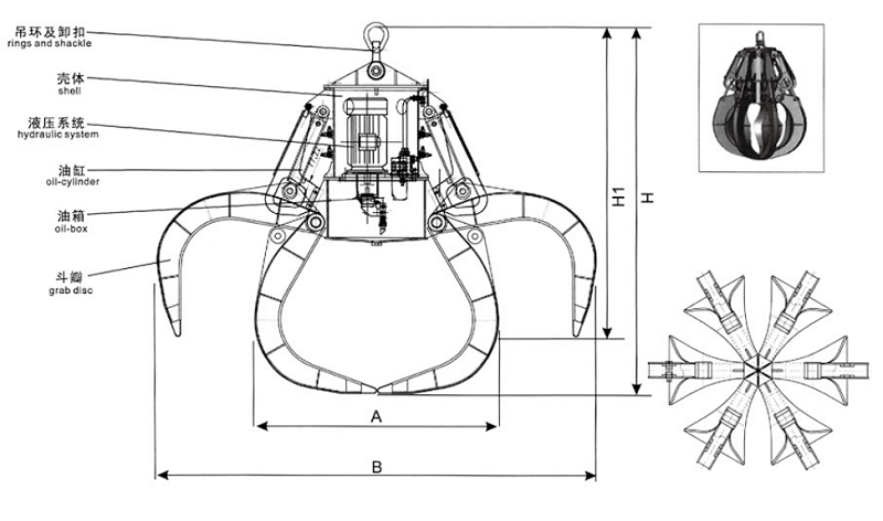 電動(dòng)液壓多瓣抓斗
