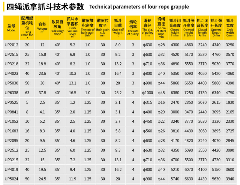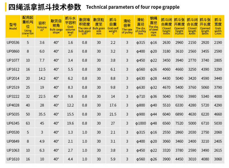 UP系列派拿雙鄂板抓斗造型新穎、結(jié)構(gòu)合理、抓取物料重量與抓斗自重之比達(dá)到1.5-1.92,充滿度達(dá)到95%。是小粒度松散物料的理想抓具。與傳統(tǒng)的普通四繩抓斗相比較有以下特點(diǎn):下承梁結(jié)構(gòu)縮短、強(qiáng)度好、自重輕;