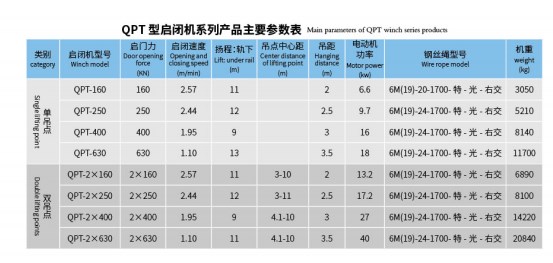 QPT型啟閉機是卷揚式啟閉機的一種型號;Q:表示啟閉機;P:表示平面閘門;T:表示臺車(移動式);