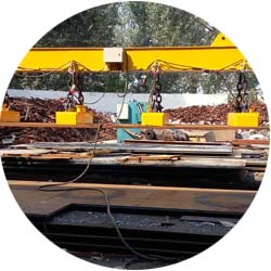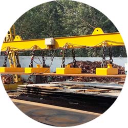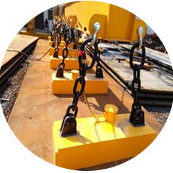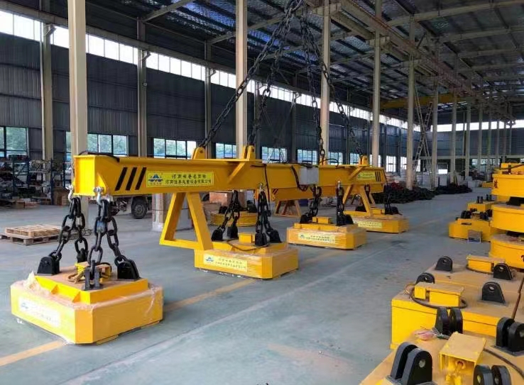 根據(jù)整塊鋼板導(dǎo)磁率大的特性,具有自重輕,吸力大的特點(diǎn)。用于吸吊大型鋼錠,連鑄板坯,厚鋼板。
